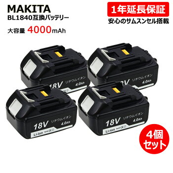 makita マキタ BL1840 互換バッテリー 高品質・長期1年保証付き(レビュー記入) 互換電池 大容量 18V 4000mAh リチウムイオン 電池 バッテリー 4個セット 安心のサムスンセル搭載 送料無料