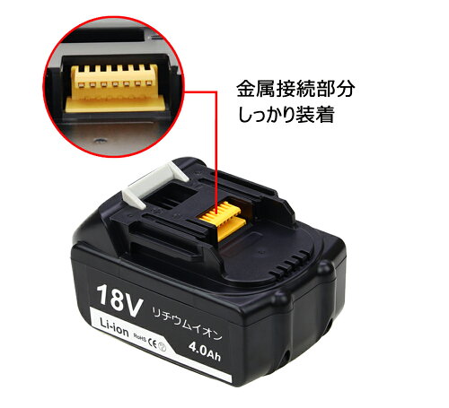 過放電・過充電・過電流保護機能付き 大容量4000mAh!連続使用時間は従来のBL1830バッテリー(3000mAh)使用時の約1.3倍アップ! バッテリー専門工場で生産、安心・安全・高品質! 注意点保証について、交換品をお送り致します。