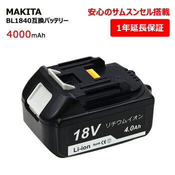 マキタ BL1840 18V 互換バッテリー 互換電池 makita 大容量 4000mAh リチウムイオン 電池 バッテリー 安心のサムスンセル搭載 高品質・長期1年保証付き(レビュー記入)